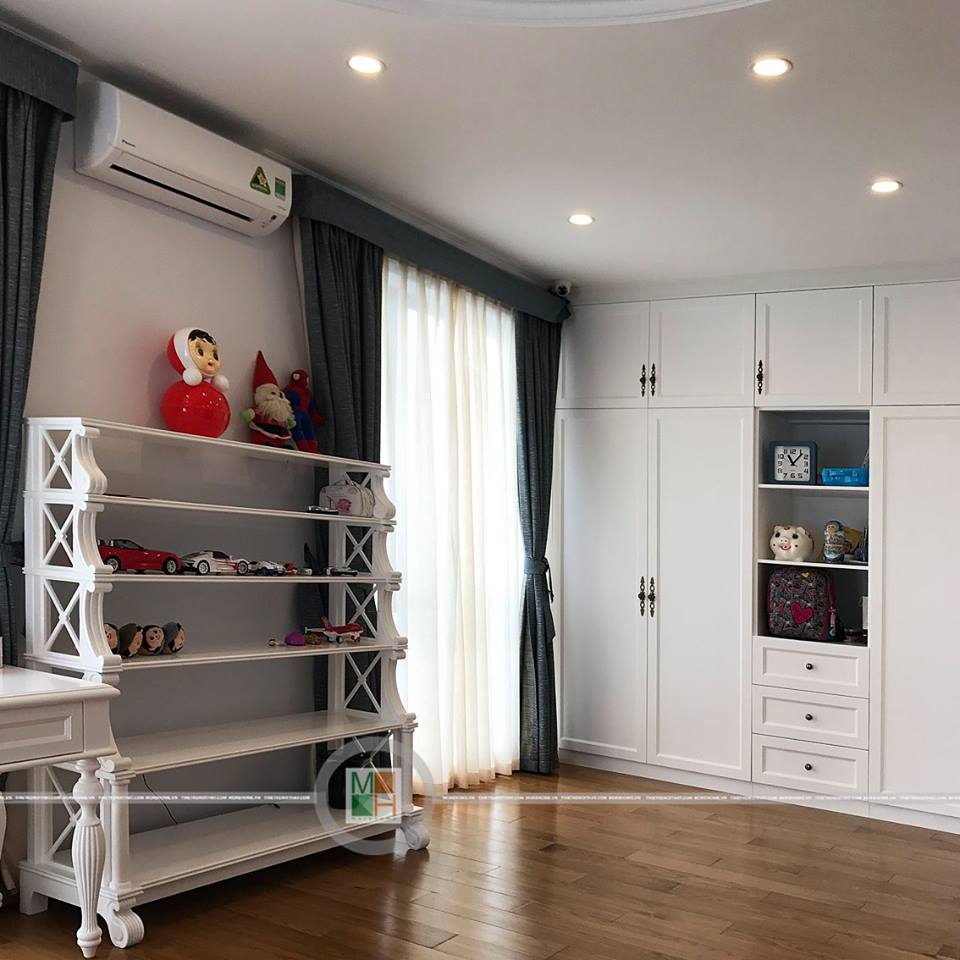 Cuối cùng là thi công nội thất phòng ngủ Master mang vẻ đẹp sang trọng và sự tinh tế. Ánh sáng tự nhiên là điểm nhấn mang đến cho gia chủ cảm giác dễ chịu và sự hứng khởi mỗi ngày thức dậy. Việc thiết kế vận dụng nhiều vật liệu nhẹ như gỗ, kính cường lực cũng góp phần tạo nên sự linh hoạt cho không gian sống. Bên cạnh đó, thiết kế tủ, kệ đơn giản, gọn gàng theo sở thích của gia chủ vừa đảm bảo tính công năng lại tiết kiệm không gian đa năng trong phòng.