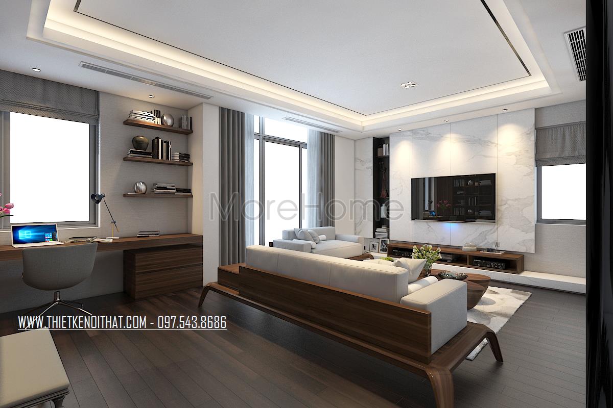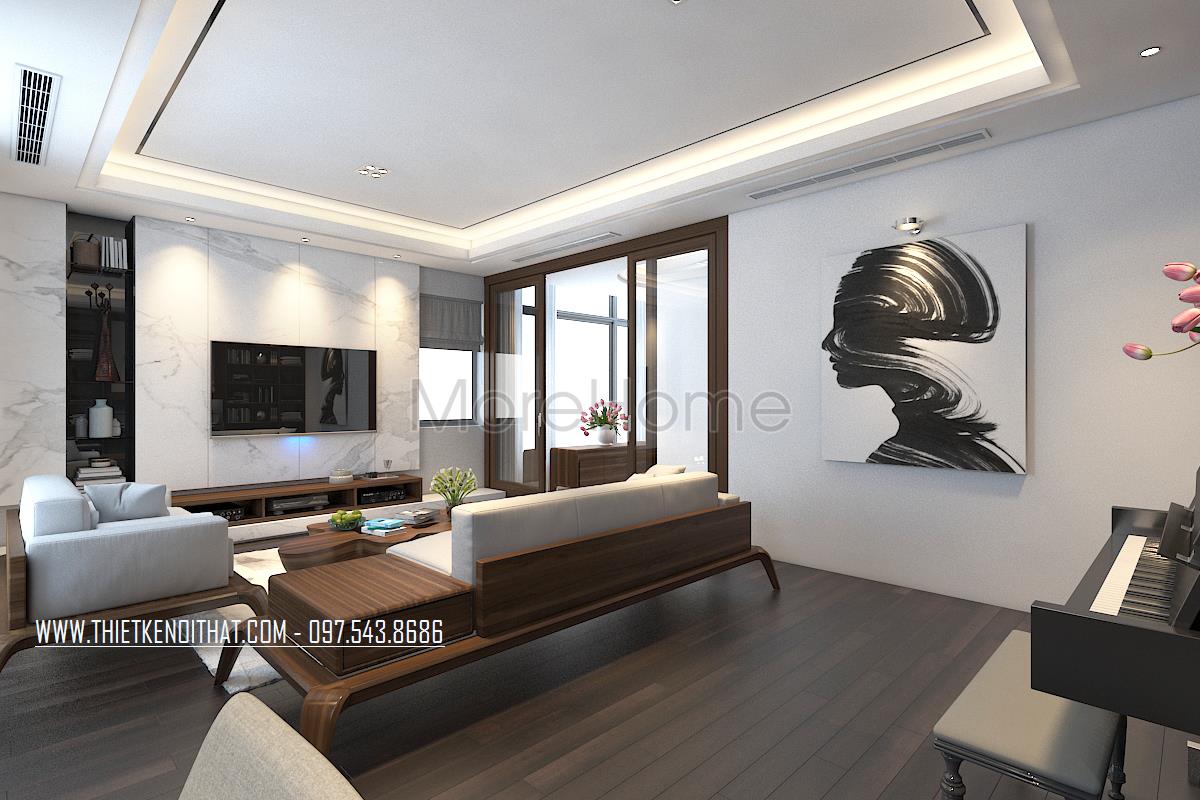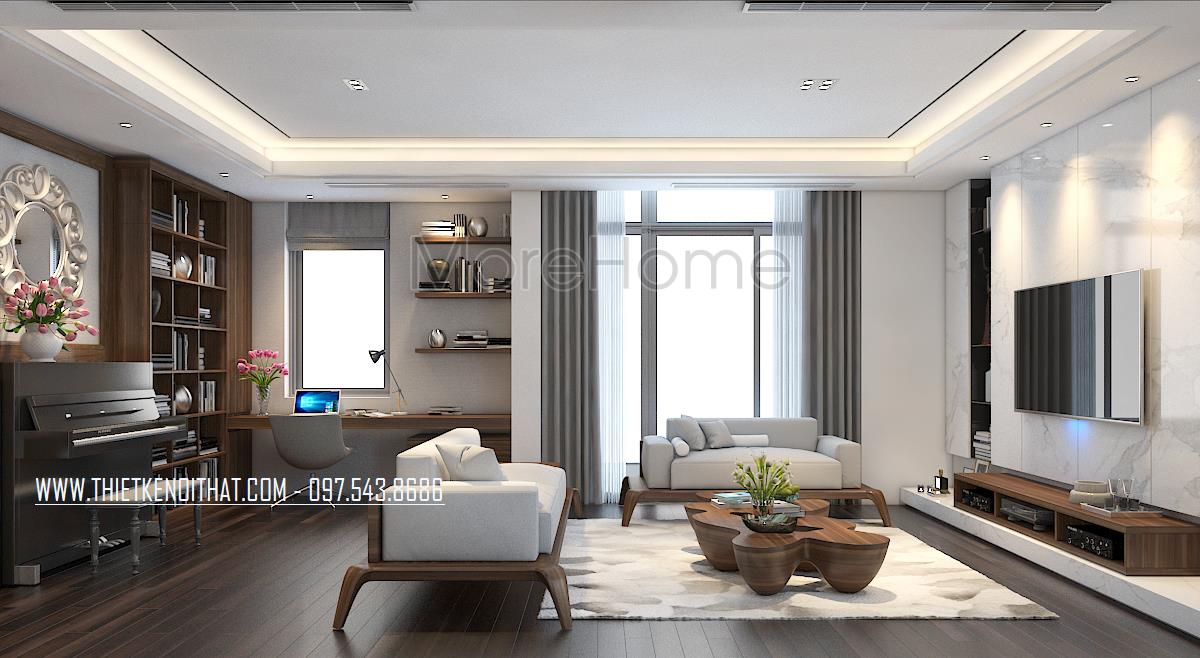 Thiết kế nội thất biệt thự cao cấp với chất liệu gỗ óc chó. Đây là mẫu thiết kế do KTS Morehome thực hiện, với mục đích mang đến cho gia chủ và gia đình có được không gian sống hiện đại, sang trọng nhất.