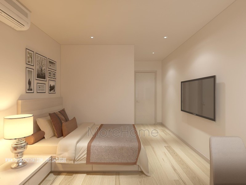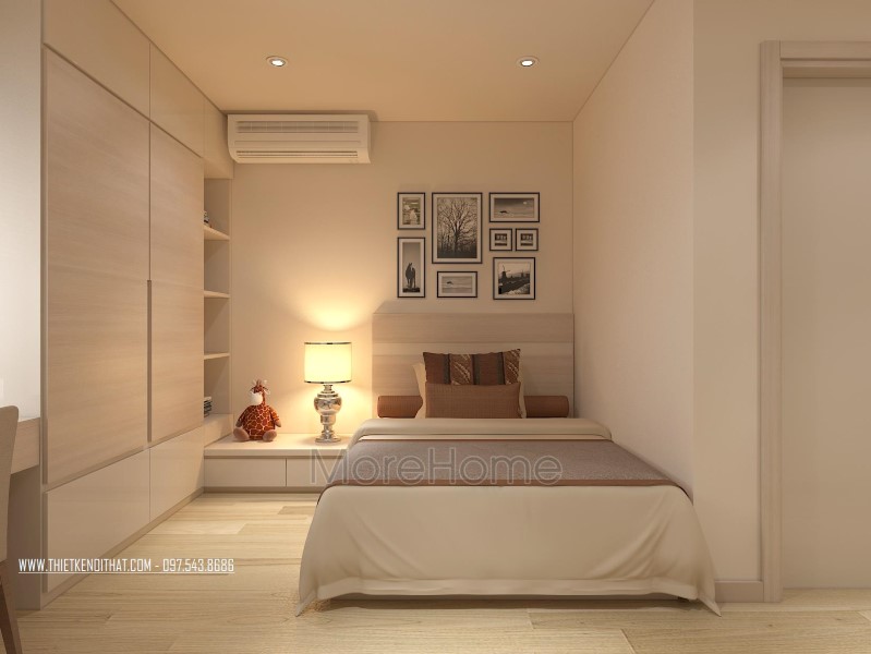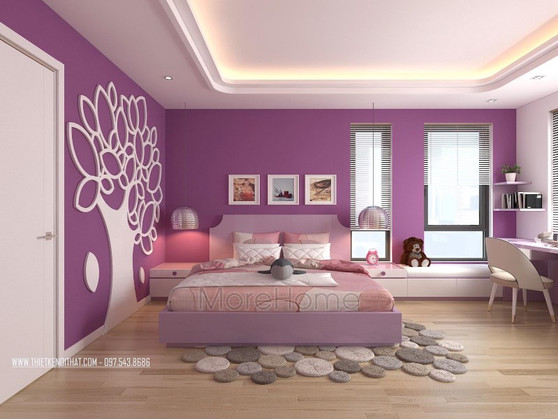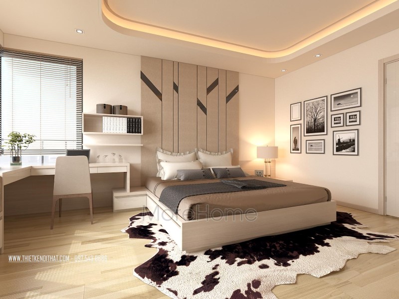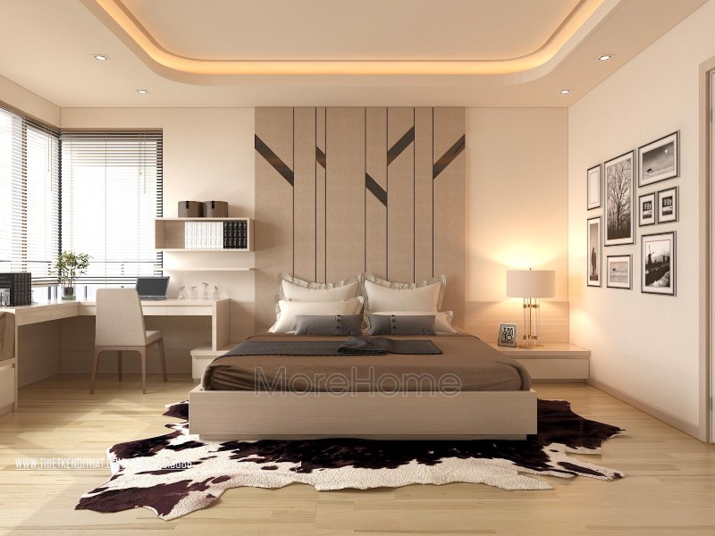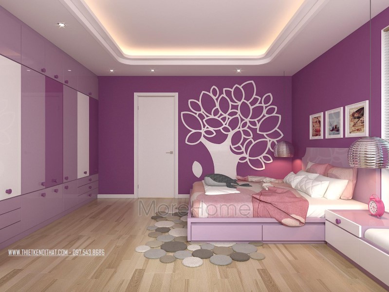 Thiết kế nội thất không gian phòng ngủ khéo léo sử dụng các tone màu đa dạng hơn để mang đến sự thay đổi mới lạ và cảm giác gần gũi cho không gian riêng tư. Tone tím hay nâu trầm, sữa được sử dụng khá nhiều giúp thiết kế trở nên sống động và thu hút hơn hẳn. Không gian phòng ngủ với các khung cửa nhỏ đem ánh sáng tự nhiên vào căn phòng. Các kệ tủ, hay ngăn kéo được tận dùng ở các ngách nhỏ của phòng giúp không gian trở nên vô cùng tiện nghi, sáng tạo, và góp phần tiết kiệm diện tích sử dụng.