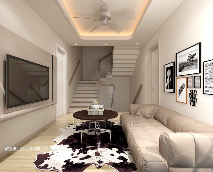 Thiết kế nội thất phòng khách hiện đại lấy ánh sáng tự nhiên làm chủ đạo. Việc sử dụng ánh sáng tự nhiên vào thiết kế nội thất giúp không gian trở nên sáng, mở, tạo độ cơi nới cho không gian và mang lại hứng khởi cho gia chủ. Bộ sofa mà kiến trúc sư sử dụng là bộ sofa có kích thước khá rộng, không gian thoáng với thiết kế sofa vững chãi mang lại hiệu ứng cảm xúc tích cực cho gia chủ và các thành viên trong gia đình, mang đến không gian sinh hoạt chung gần gũi và thư giãn.