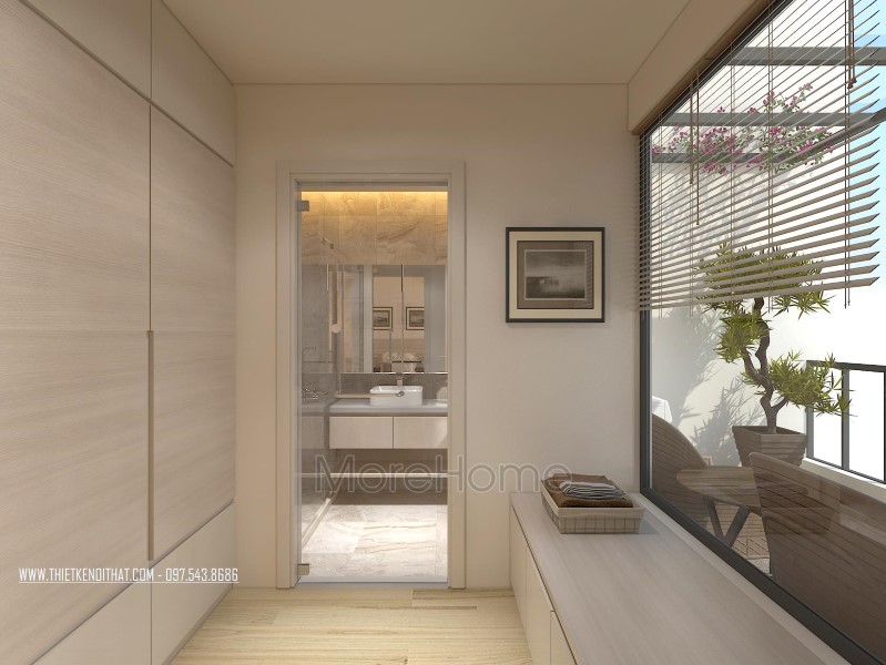 Đặc biệt ở thiết kế nội thất không gian này, kiến trúc sư đã khéo léo thay thế các bức tường thô cứng thành các không gian cửa kính cường lực trong suốt, đem ánh sáng tự nhiên vào phòng, vừa đảm bảo tính thẩm mỹ, tăng diện tích mở, lại giúp gia chủ tiết kiệm một lượng lớn điện năng tiêu thụ hằng tháng.