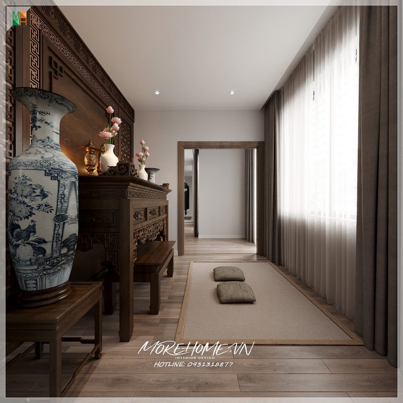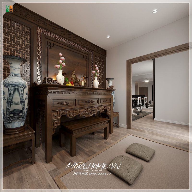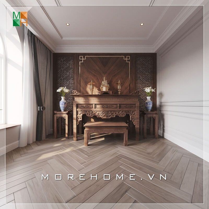 Thiết kế phòng thờ đẹp diện tích nhỏ cho nhà phố, chung cư, biệt thự bố trí nội thất không gian hợp lý tạo nên một không gian thờ phụng tôn nghiêm và trang trọng.