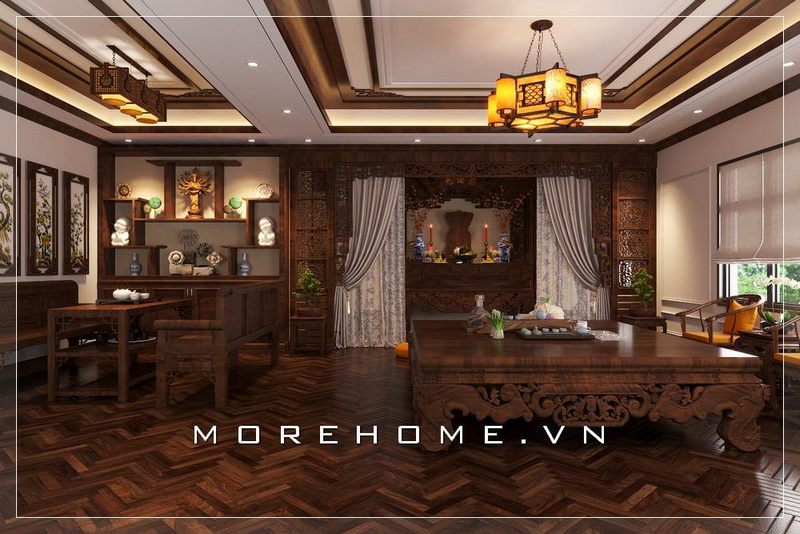 Bước vào căn phòng thờ biệt thự đẹp với nội thất gỗ óc chó cao cấp khiến người xem phải ngỡ ngàng trước vẻ được không gian căn phòng.